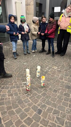 Vom 31.01. bis zum 02.02.25 fuhren die Kommunionkinder aus unserer Gemeinde zusammen mit den Kommunionkindern aus St. Andreas und St. Ludgerus & Martin für ein Wochenende ins Haus Altfrid nach Kettwig. Nachdem sich alle Kinder im Torbogen von den Eltern verabschiedet hatten, wurden die Zimmer bezogen und das Gelände erkundet. Gestärkt vom Abendessen trafen sich alle Kommunionkinder aus den drei Gemeinden und sahen ein Anspiel zu Elia. Anschließend ging es ins Abendprogramm der Gemeinden über: Wir spielten "Obstsalat" und das "Rote Sofa" und haben dabei viel gelacht. Anschließend blieb auf den Zimmern noch Zeit dir üppigen Süßigkeitenvorräte zu plündern. Anschließend fielen alle müde aber glücklich ins Bett.