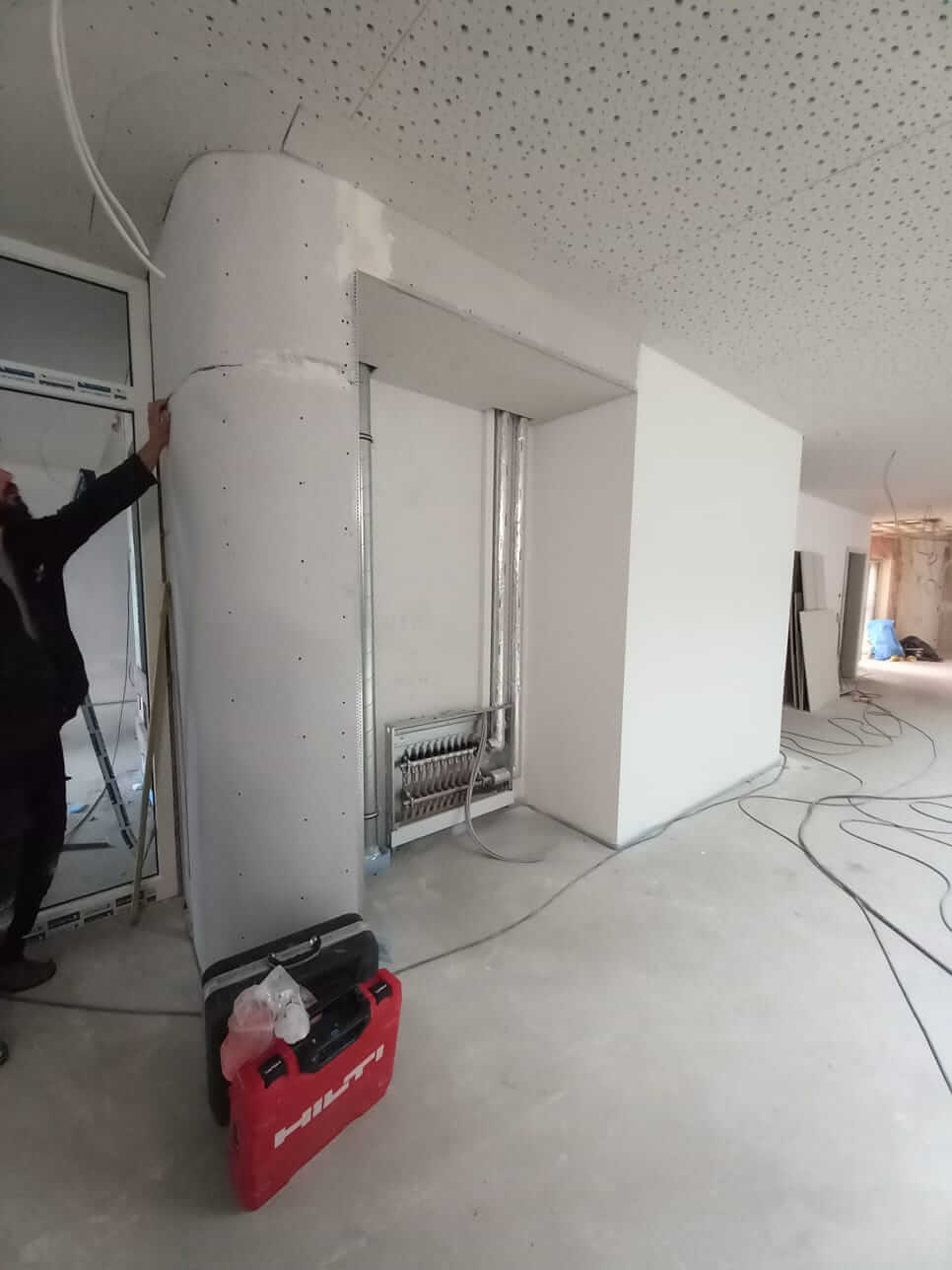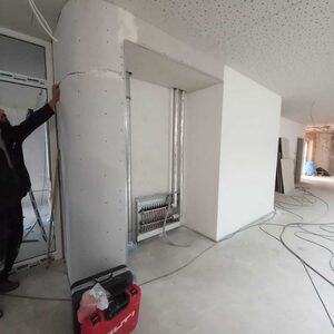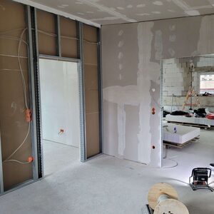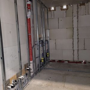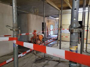 Der Innenausbau schreitet weiter voran. Inzwischen ist die Wärmepumpen-Heizungsanlage installiert, der Trockenbau ist im Feinschliffmodus und die Fliesenlegerarbeiten starten.