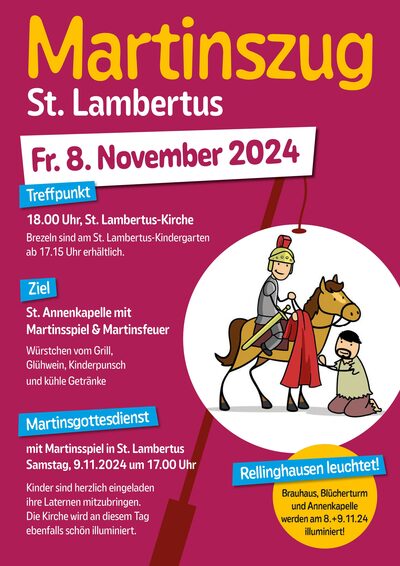 Der diesjährige St. Martinszug startet am 08. November um 18 Uhr an der Kirche St. Lambertus und führt wieder zur Annenkapelle.