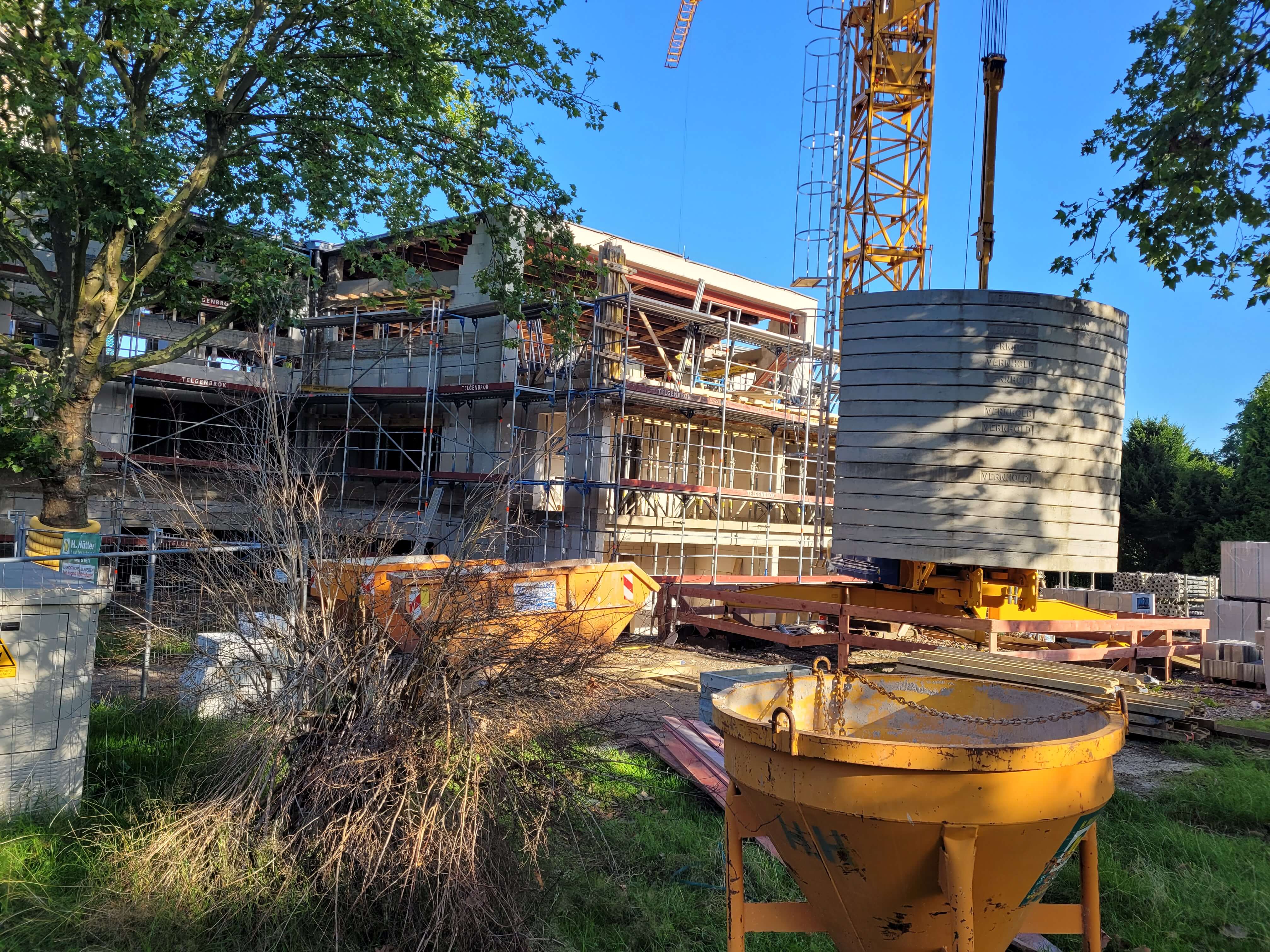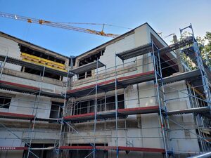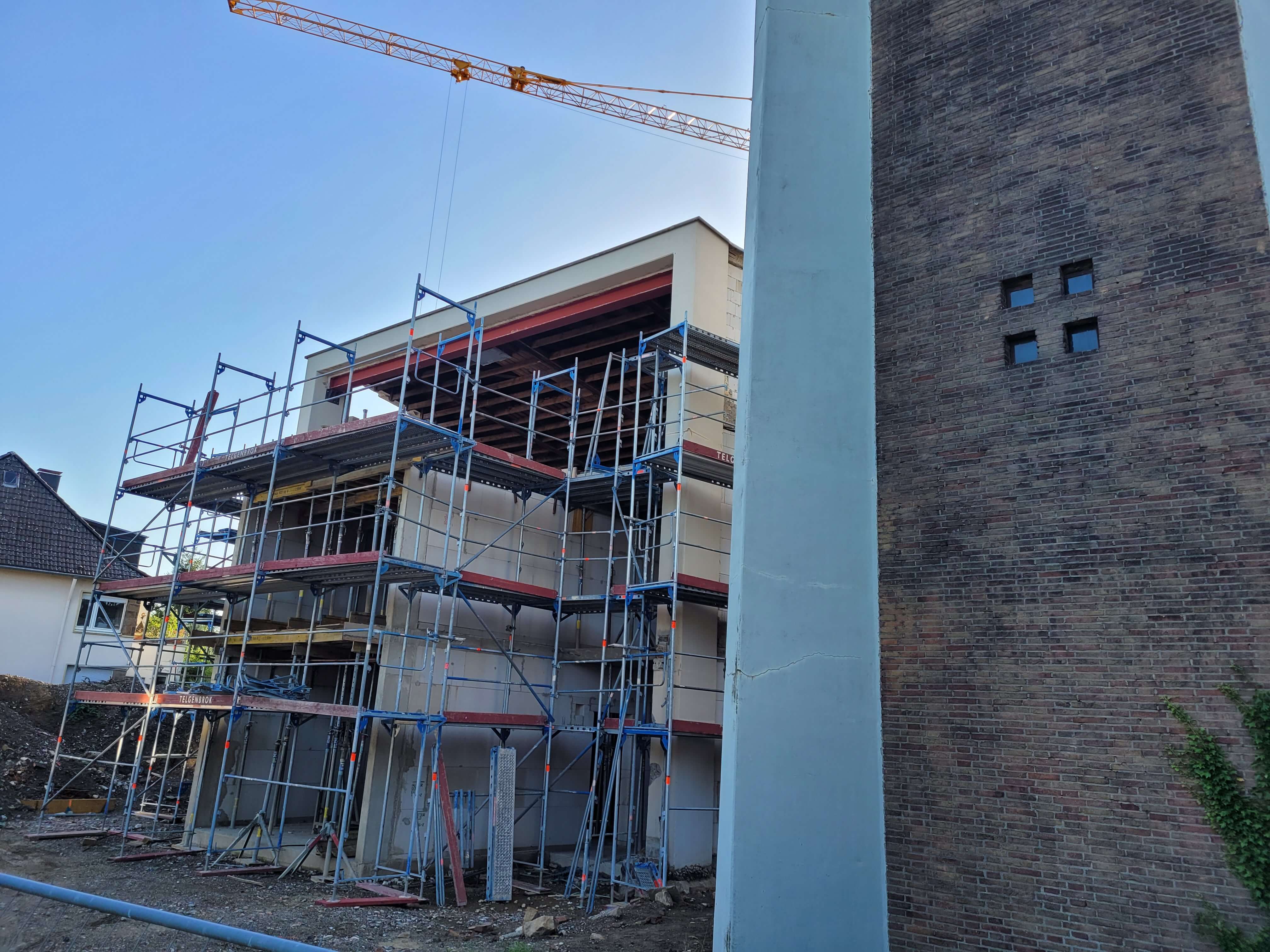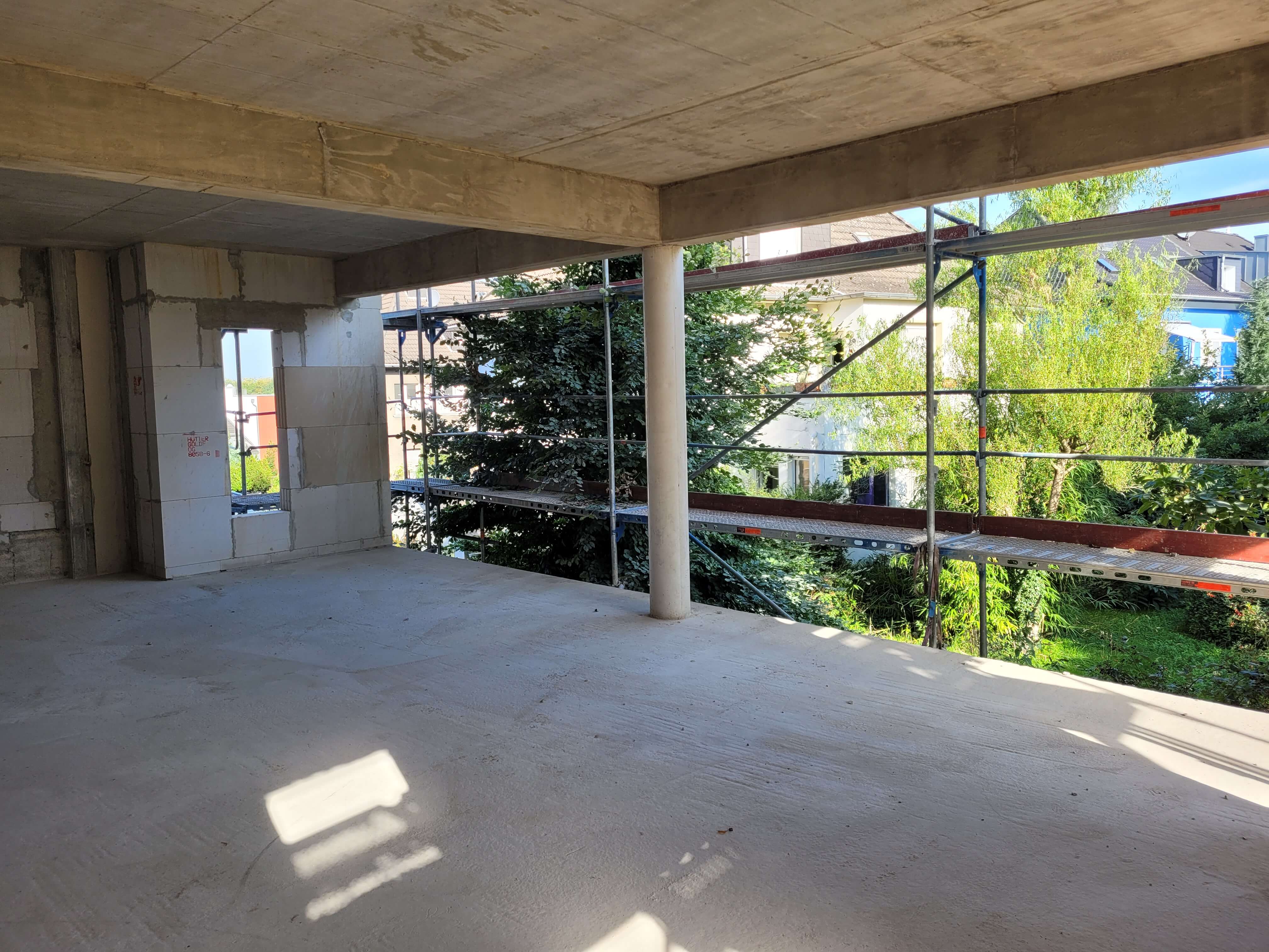 Inzwischen wurden die Rohbauarbeiten beendet. In den nächsten Wochen wird auf der Baustelle wenig los sein. Im Laufe des Oktobers startet dann die Installation der Fenster.