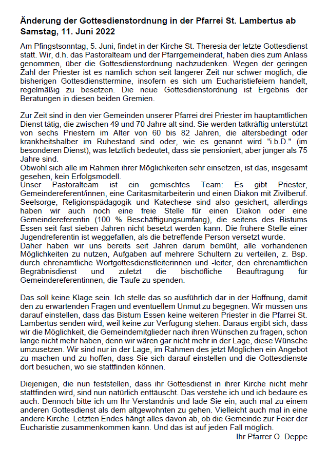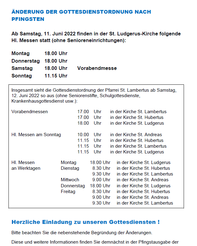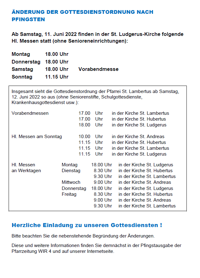 Gottesdienst-Termine in St. Ludgerus und Martin können Sie auch den aktuellen Gemeindemitteilungen entnehmen.