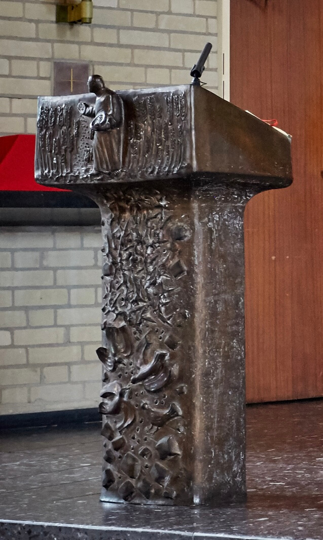 Der Ambo ist ein Werk der Marienthaler Künstlerin Hildegard Bienen (1925-1990). Sie hat viele Kirchen im Bistum und in der Stadt Essen ausgestaltet, unter anderem auch die ehemalige St. Martin-Kirche.