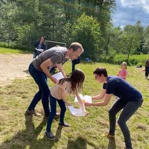 Samstag Vormittag gab es verschiedene Workshops zum Thema "GLÜCKlich". Die Erwachsenen haben sich in eine Schreibwerkstatt begeben, sich über Glück in Popsongs ausgetauscht oder vom Glück auf dem Jakobsweg gehört. Die Kinder haben Glücksbringer gebastelt und gebacken und die Jugendlichen haben ihr Glück im Bogenschießen gefunden. Nach der Mittagspause ging es weiter beim "Familienduell". In ganz unterschiedlichen Spielen wurde die Familie des Wochenendes gesucht - und gefunden.
