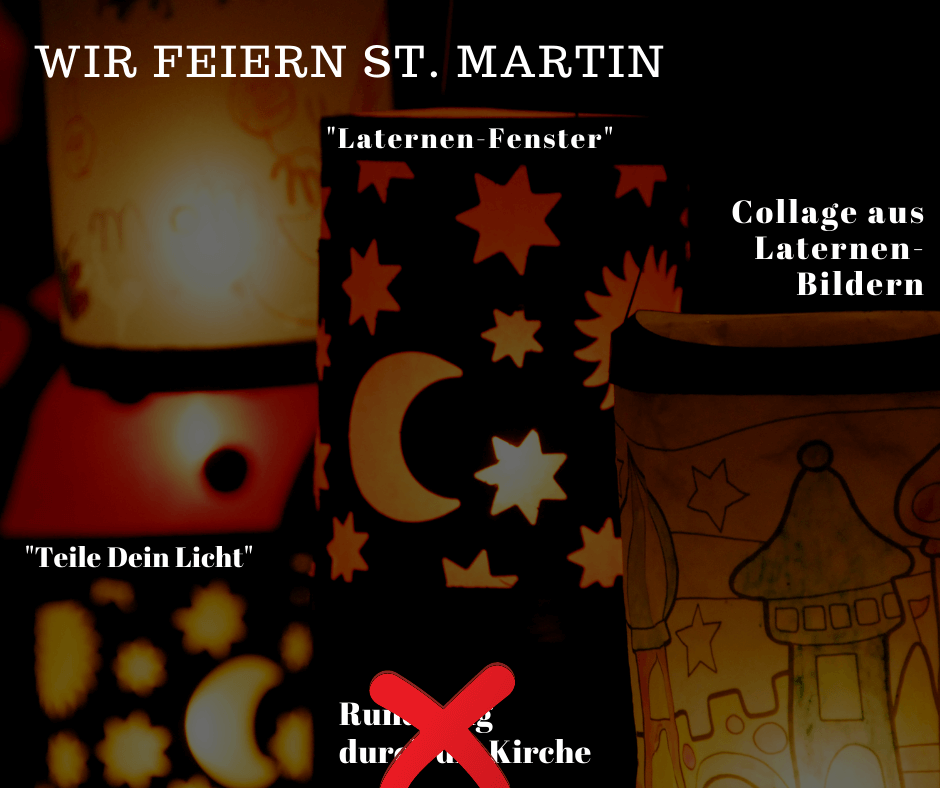 Ab Sonntag, 1. November können Kinder und ihre Familien ihre gebastelten Laternen beleuchtet in die Fenster hängen, so dass Spaziergänger sie sehen können. Bei einem abendlichen Rundgang durch den Stadtteil kann man so trotzdem den Martinsgedanken spüren.