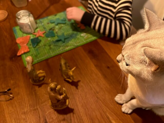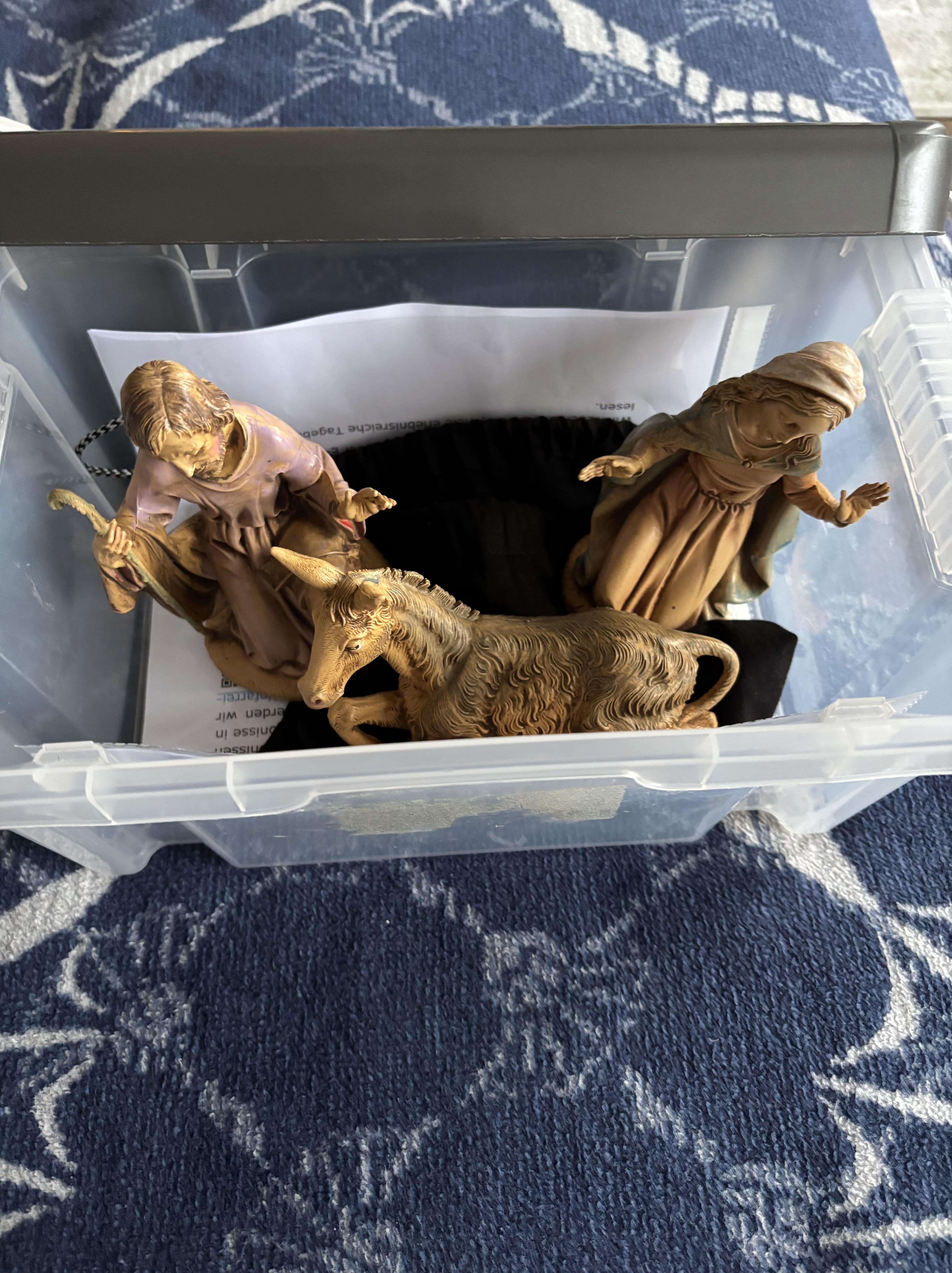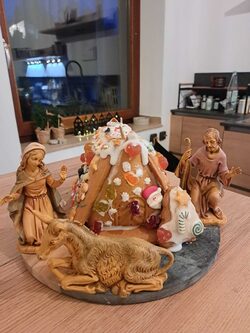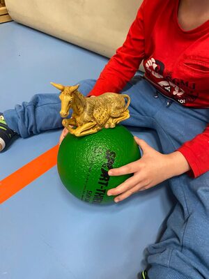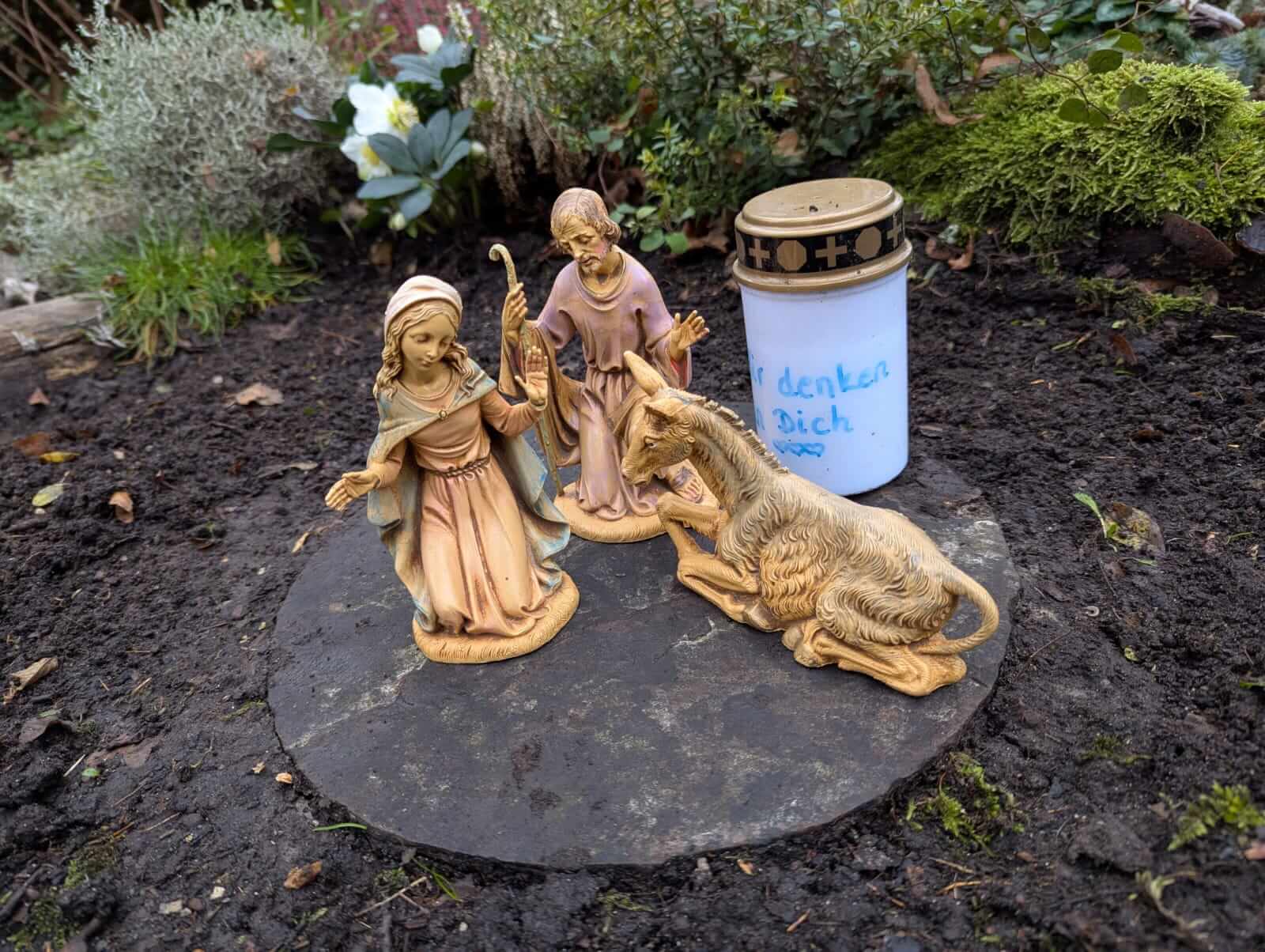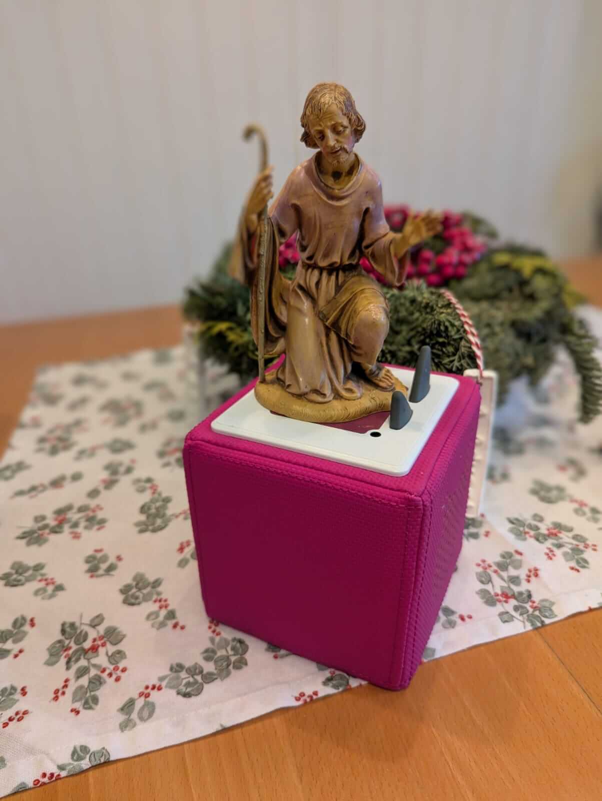 Josef wurde auf eine sogenannte Toniebox gestellt und anscheinend dachte das Kind, er würde singen. Weil ich weiß, wie Josef singt, bin ich schnell geflüchtet, aber er hat wohl den Blick von Maria gesehen und hat uns zum Glück verschont. Nicht, dass vor lauter Schreck das Kind zu früh geboren wird. Bei meiner Flucht bin ich auf einem Berg gelandet, der sich dann aber als ziemlich entspannter Typ namens Buddha entpuppte. Der hat da aber nur gesessen und nichts gemacht, das war mir dann schnell zu öde. Wir haben dann alle zusammen doch noch gesungen und so im Chor klang Josef ganz ok. In den Liedern kamen sogar zwei Menschen vor, die auch Maria und Josef heißen, das fand ich echt lustig.
