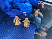 heute waren wir wieder bei einer neuen Gastfamilie, wo wir viel erlebt haben. Eigentlich waren wir ja mit lecker duftenden Plätzchen als Wegzehrung gereist, aber da haben wir gar nichts von abbekommen. Die Gastmutter scheint mit dem Krümelmonster verwandt zu sein... Für uns und das Gastkind gab es lediglich Äpfel und zuckerfreie Dinkelkekse. Dann sind wir mit auf den Friedhof gegangen und haben das Grab vom Opa des Kindes schön gemacht und Kerzen angezündet. Anschließend waren wir etwas durchgefroren, aber das Kind hat wild mit uns gespielt, da ist uns schnell wieder warm geworden.
