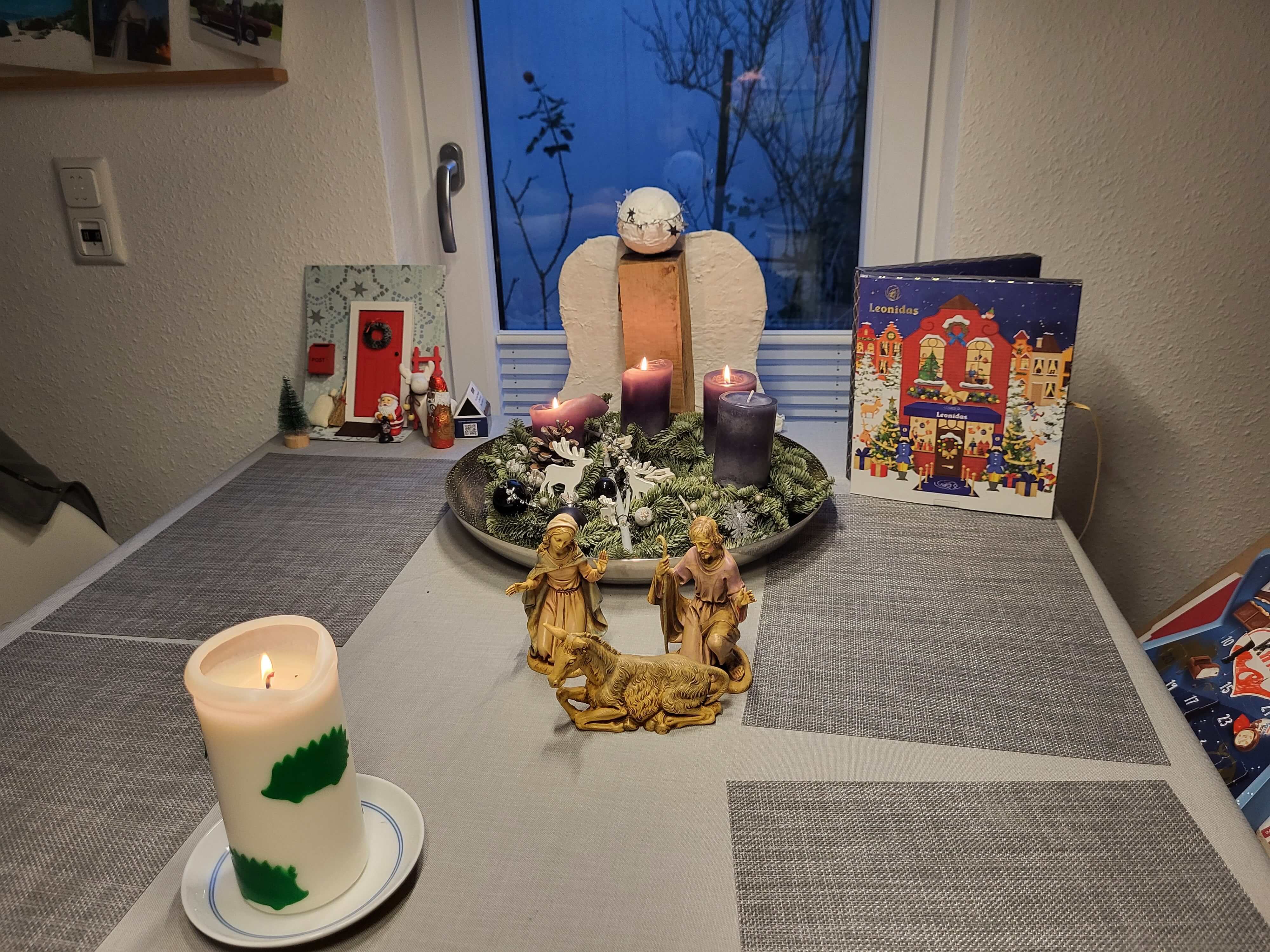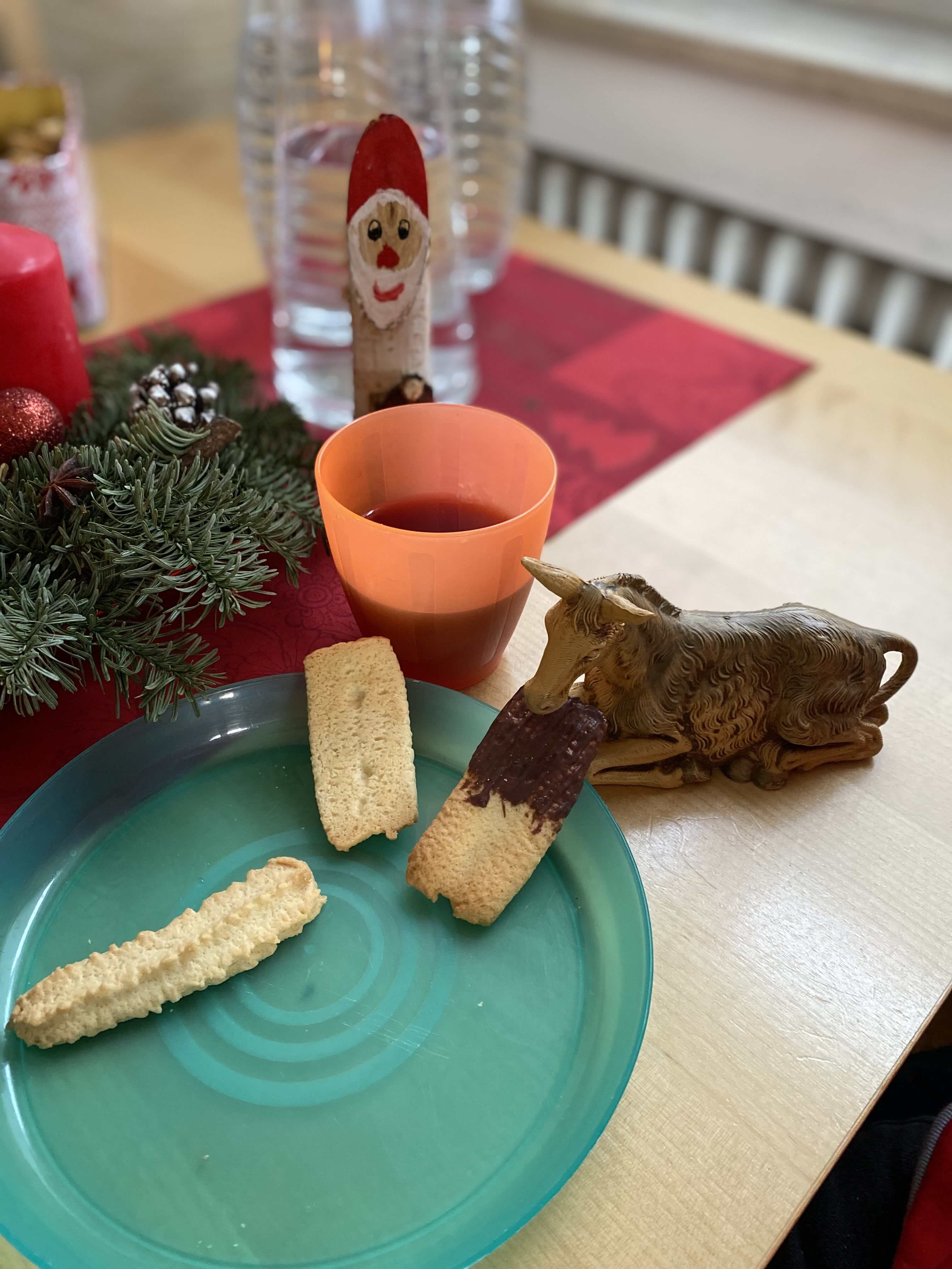 Anschließend haben wir uns bei unserer Herbergsfamilie etwas ausgeruht. Als beide Kinder wieder aus der Kita zurück waren, haben wir uns ein wenig gestärkt. Während Maria und Josef gesundes Obst gegessen haben (für das ungeborene Baby bestimmt auch besser), probierte ich die selbstgebackenen Schokoladenplätzchen. Mhhh, waren die lecker!