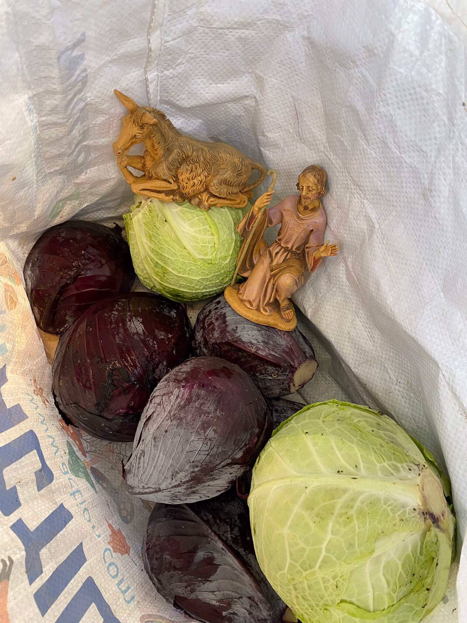 Anschließend ruhten wir uns ein wenig bei unserer Gastfamilie aus, um neue Kraft zu sammeln. Die war auch nötig, denn nachmittags ging es auf ein Selbsterntefeld, um den letzten Rotkohl zu ernten. Ich habe mich bei der Arbeit ein wenig zurück gehalten, aber Josef hat kräftig mitgeerntet.