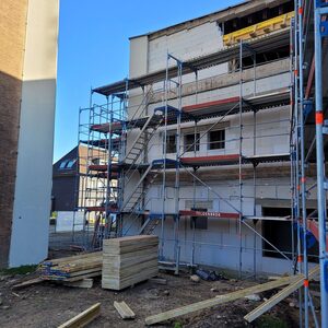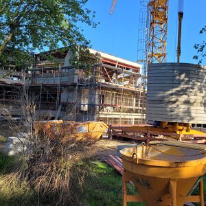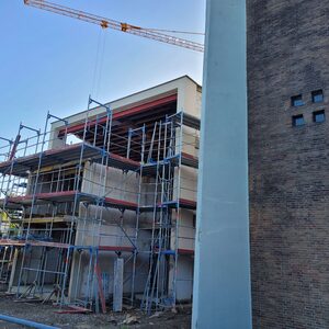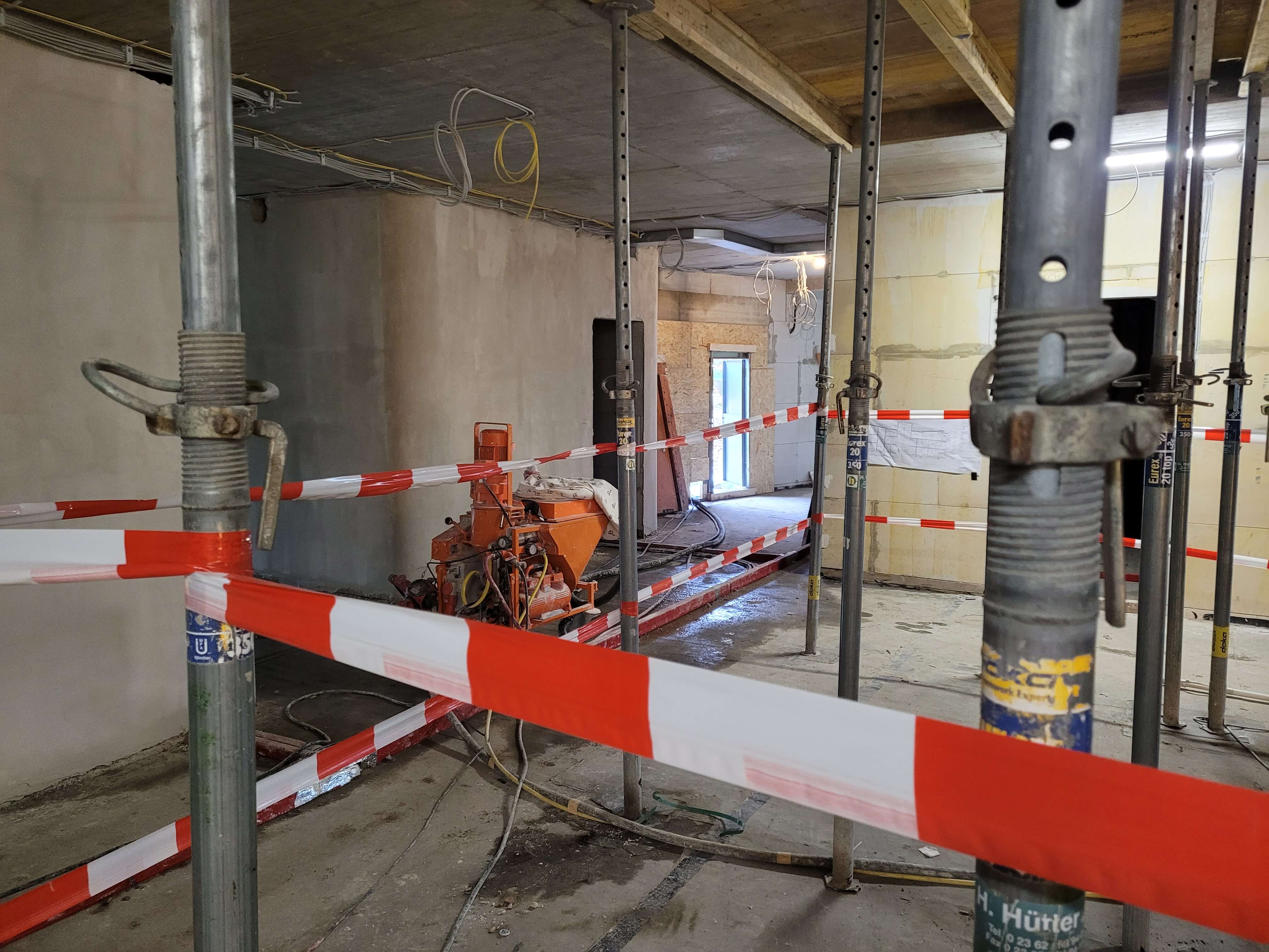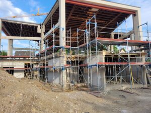 Die neuen Wände sind inzwischen weitestgehend fertiggestellt. Die Rohbauarbeiten werden im August beendet. An den Rohbau schließt sich eine Phase an, in der auf der Baustelle wenig zu sehen sein wird. Einige Arbeiten werden dann, nach außen wenig sichtbar, im Inneren des Gebäudes erledigt. Aufgrund der guten Auslastung von Fachfirmen werden auch einige Arbeiten wie die Installation der neuen Fenster etwas später als geplant starten. Die vorgesehene Fertigstellung im Sommer 2024 ist durch diese Verzögerung aber nicht in Frage gestellt.
