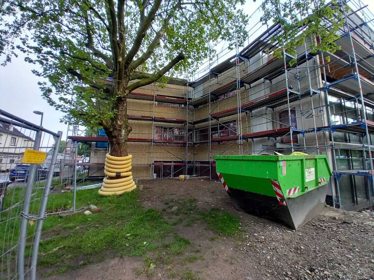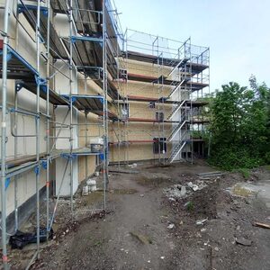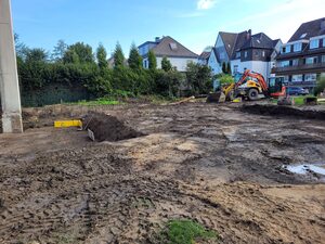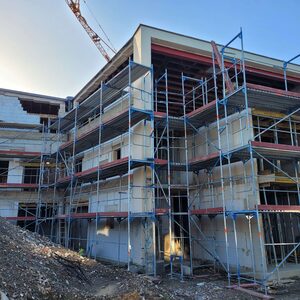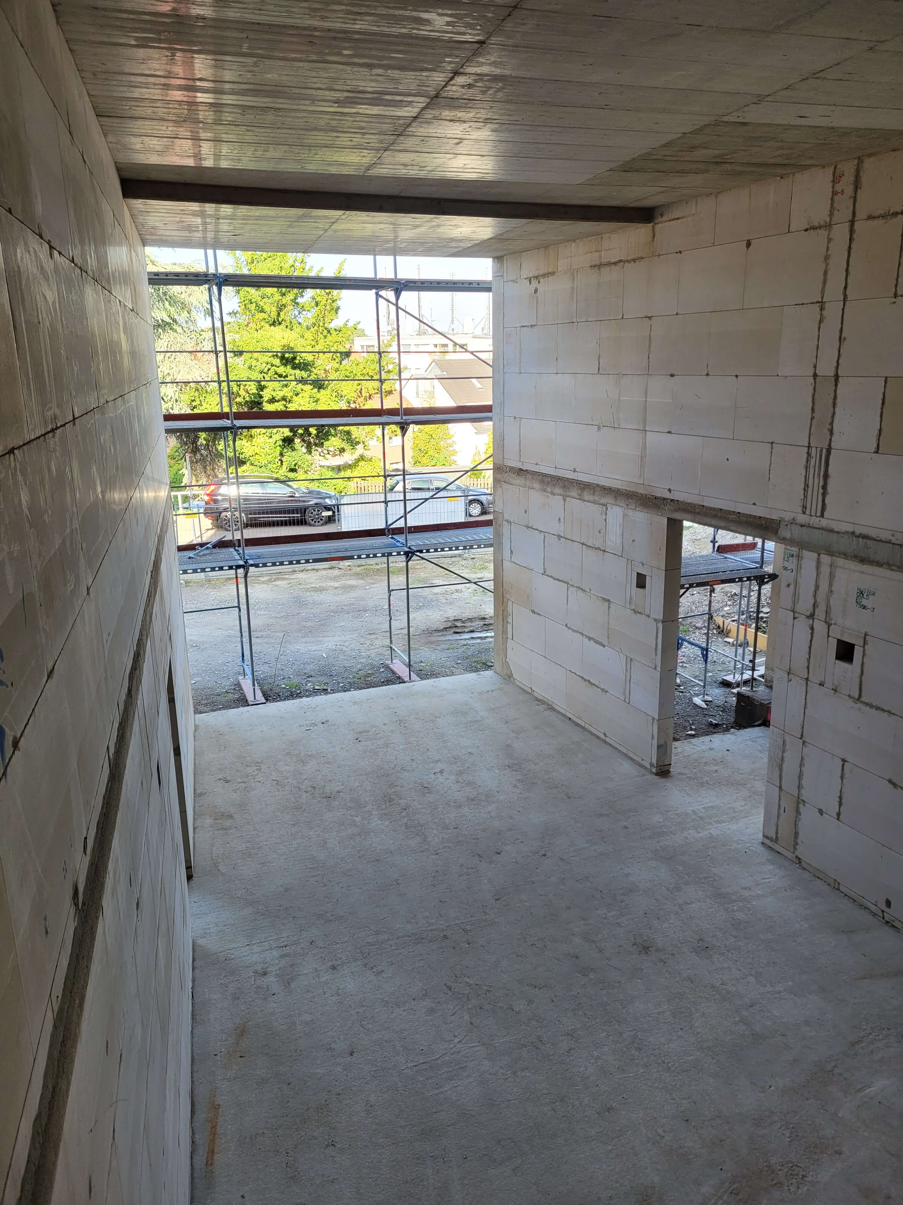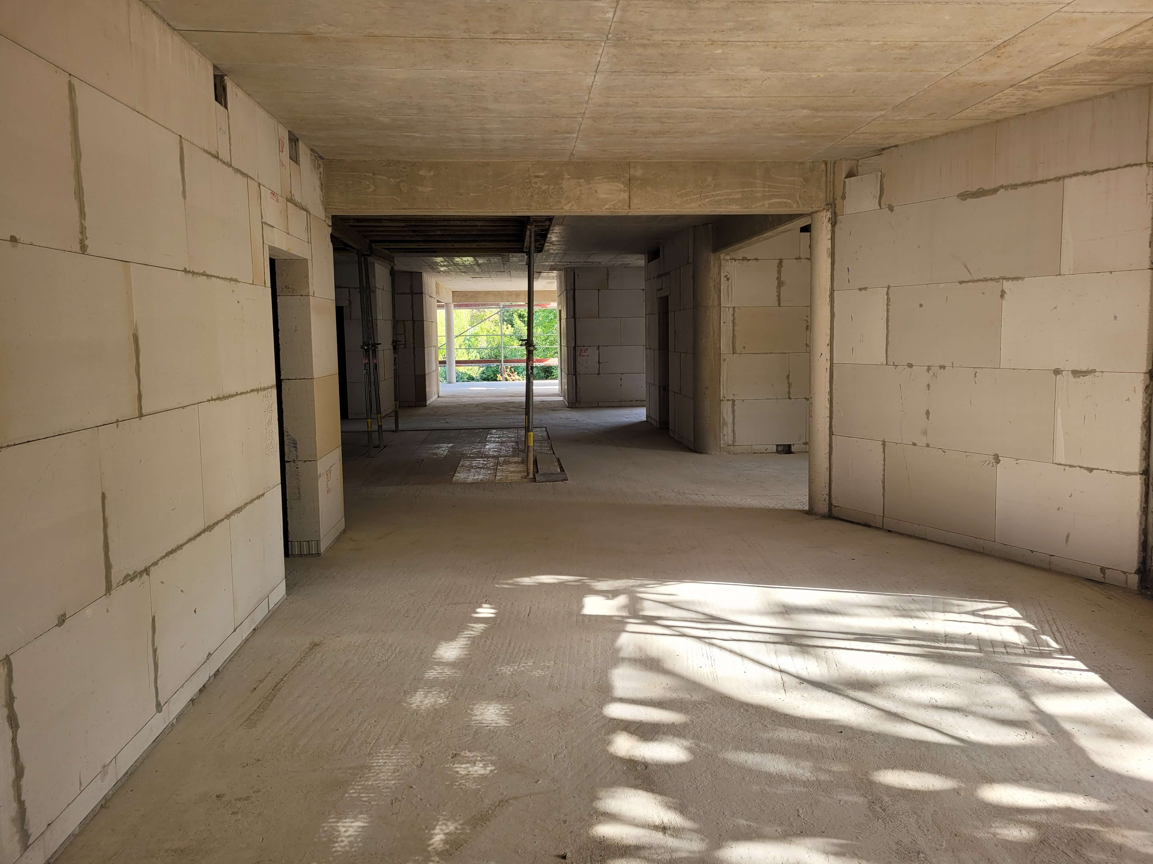 Inzwischen wurden die Rohbauarbeiten beendet. In den nächsten Wochen wird auf der Baustelle wenig los sein. Im Laufe des Oktobers startet dann die Installation der Fenster.