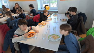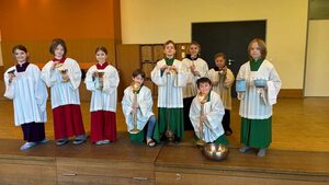 Vom 31.01. bis zum 02.02.25 fuhren die Kommunionkinder aus unserer Gemeinde zusammen mit den Kommunionkindern aus St. Andreas und St. Ludgerus & Martin für ein Wochenende ins Haus Altfrid nach Kettwig. Nachdem sich alle Kinder im Torbogen von den Eltern verabschiedet hatten, wurden die Zimmer bezogen und das Gelände erkundet. Gestärkt vom Abendessen trafen sich alle Kommunionkinder aus den drei Gemeinden und sahen ein Anspiel zu Elia. Anschließend ging es ins Abendprogramm der Gemeinden über: Wir spielten "Obstsalat" und das "Rote Sofa" und haben dabei viel gelacht. Anschließend blieb auf den Zimmern noch Zeit dir üppigen Süßigkeitenvorräte zu plündern. Anschließend fielen alle müde aber glücklich ins Bett.