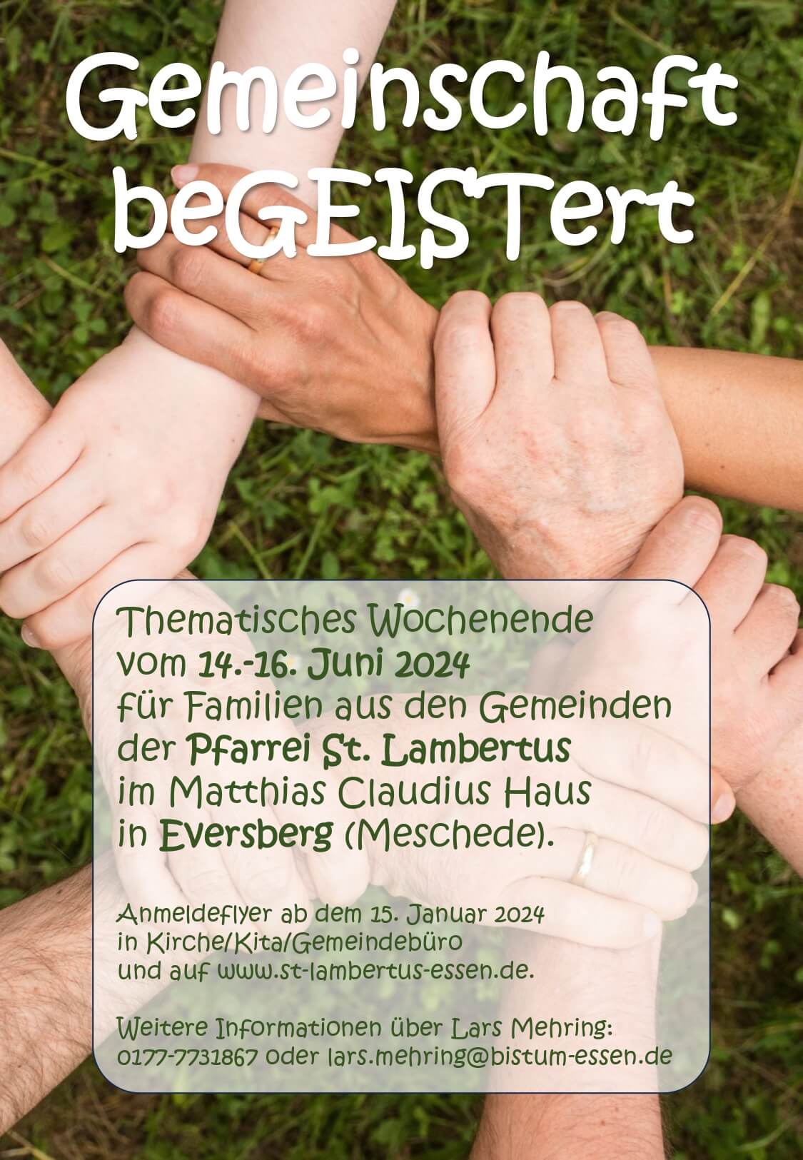 Der Termin für das Familienwochenende 2024 steht auch schon fest: Vom 14.-16. Juni 2024 sind wir wieder in Meschede zu Gast. Weitere Infos folgen Anfang des neuen Jahres.