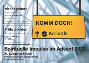 Es finden im Dezember bis Weihnachten an jedem Mittwochabend um 20 Uhr Abendgebete und an jedem Freitagmorgen um 6.15 Uhr Frühschichten statt.