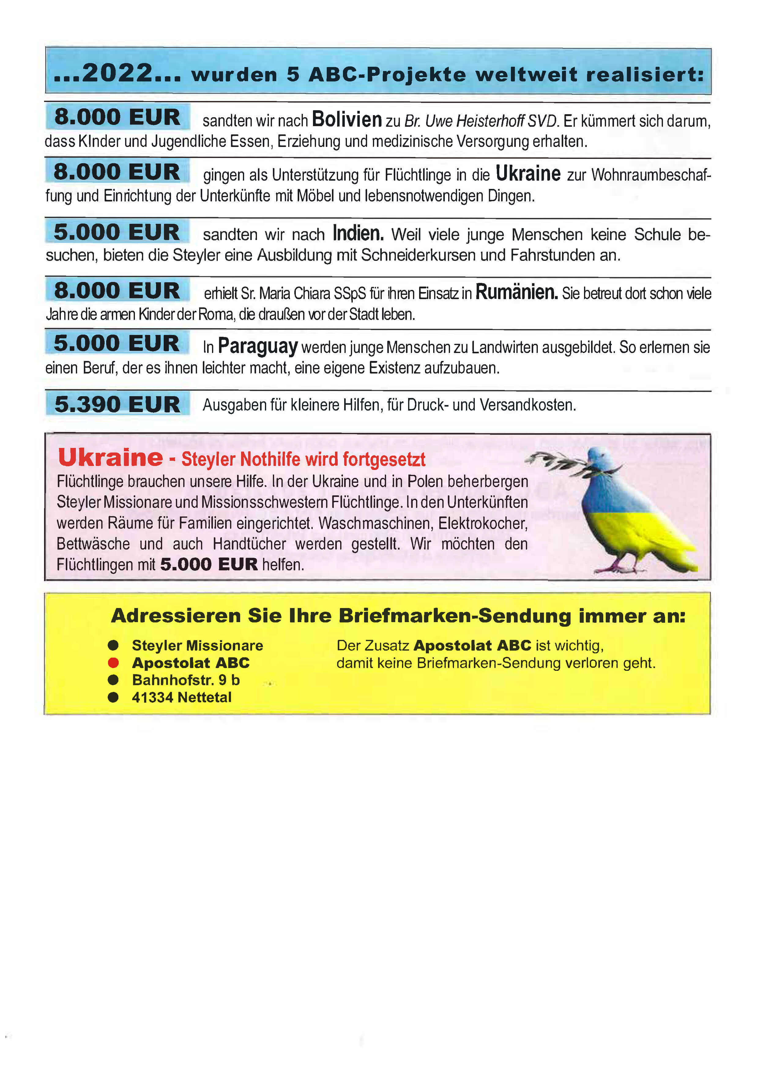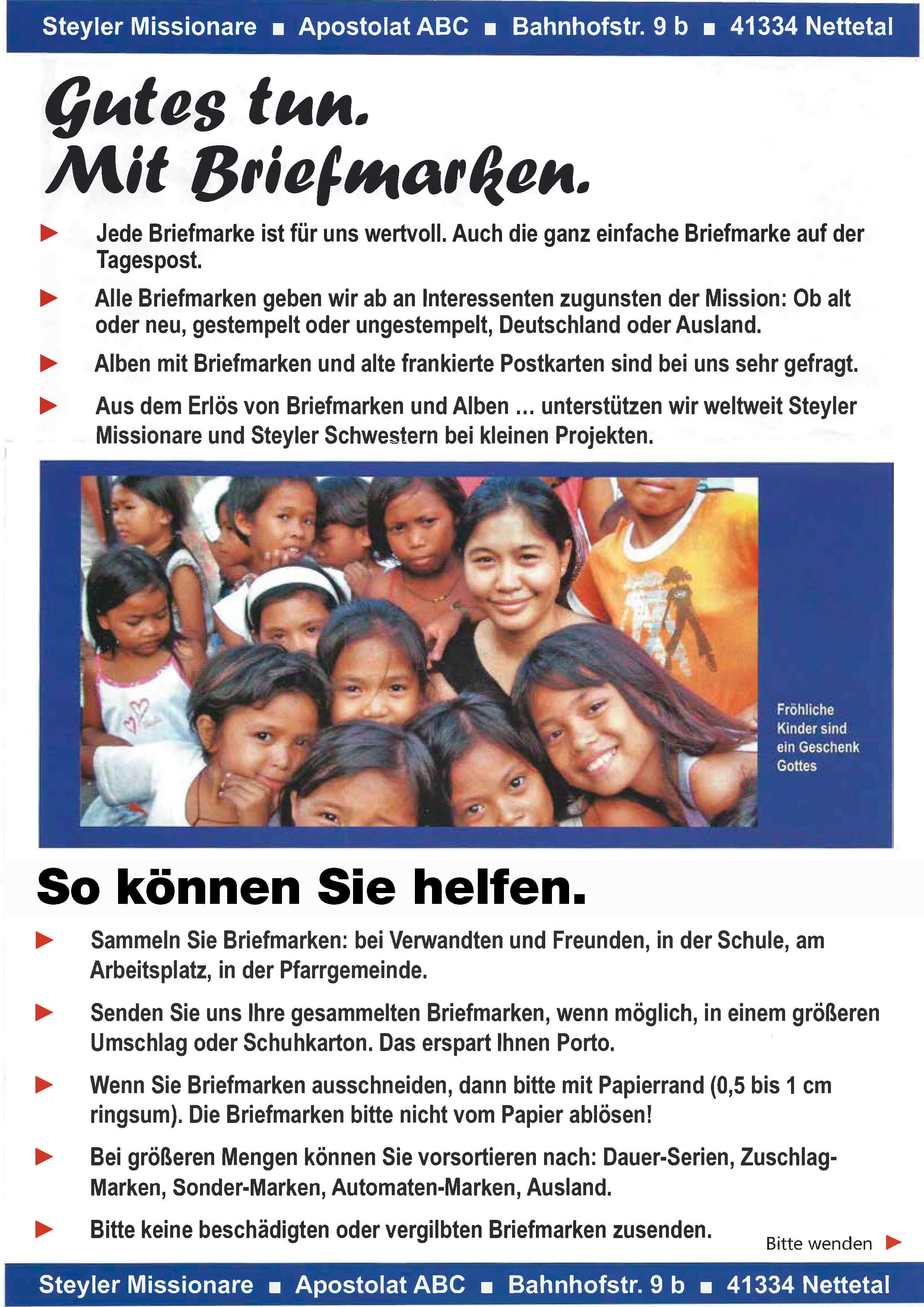 Die Steyler Missionare nehmen gerne gebrauchte Briefmarken an, denn man kann damit tatsächlich gut kirchliche Projekte finanzieren oder bezuschussen.