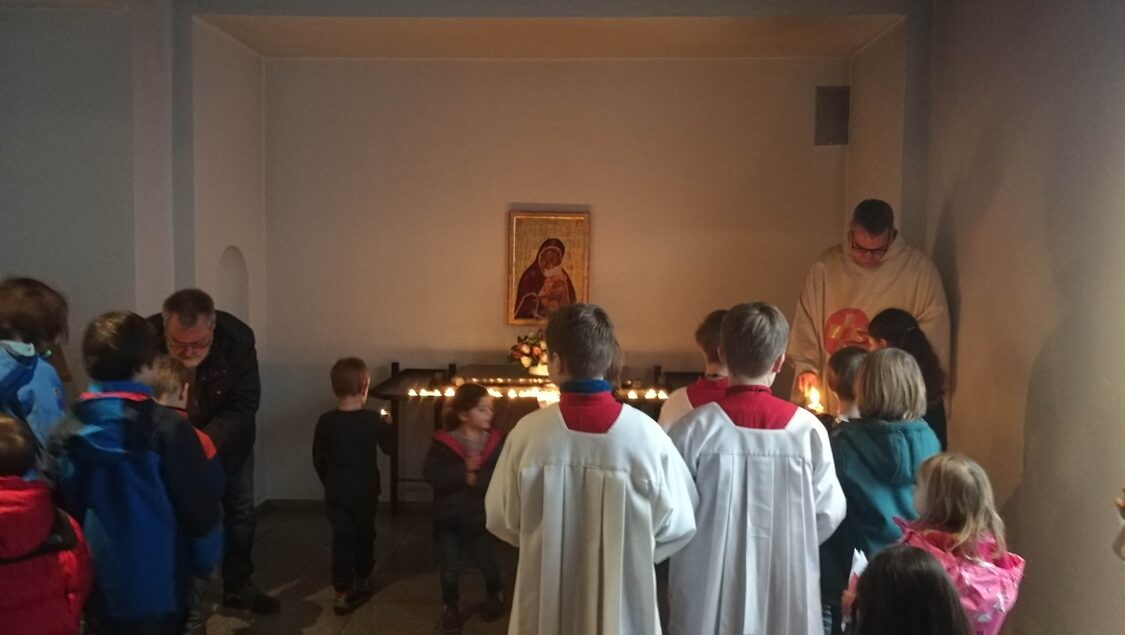 Im Anschluss wurde sie gesegnet und in einer Prozession zusammen mit den Messdienern und Kindern in die Marienkapelle getragen. Jedes Kind konnte eine Kerze entzünden, so dass am Ende die neue Ikone hell erleuchtet an ihrem neuen Platz hing.