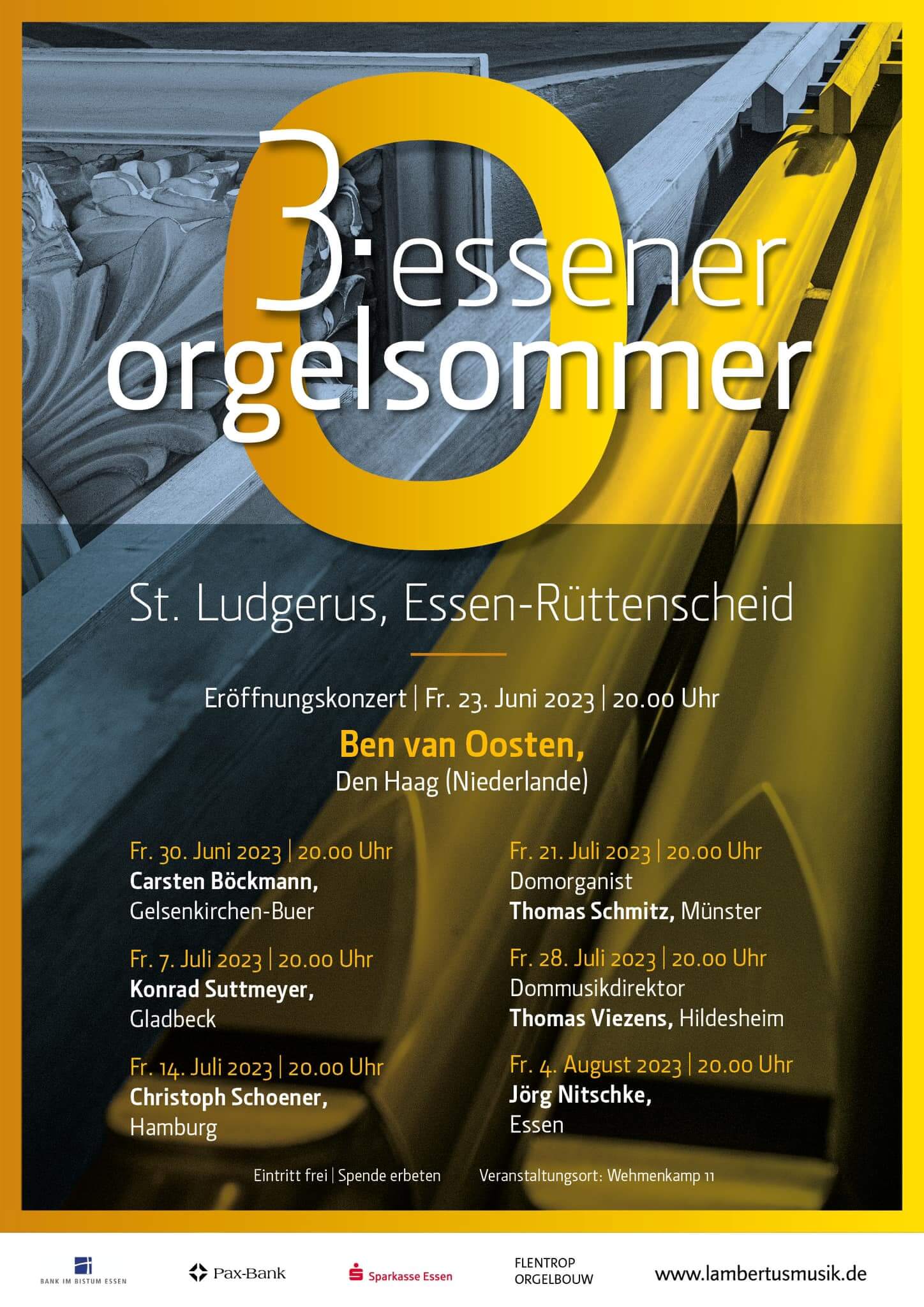 Vom 23. Juni bis zum 4. August 2023 erleben Sie jeweils freitags ab 20.00 Uhr erlesene Orgelmusik in der Kirche St. Ludgerus, Wehmenkamp.