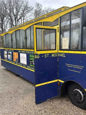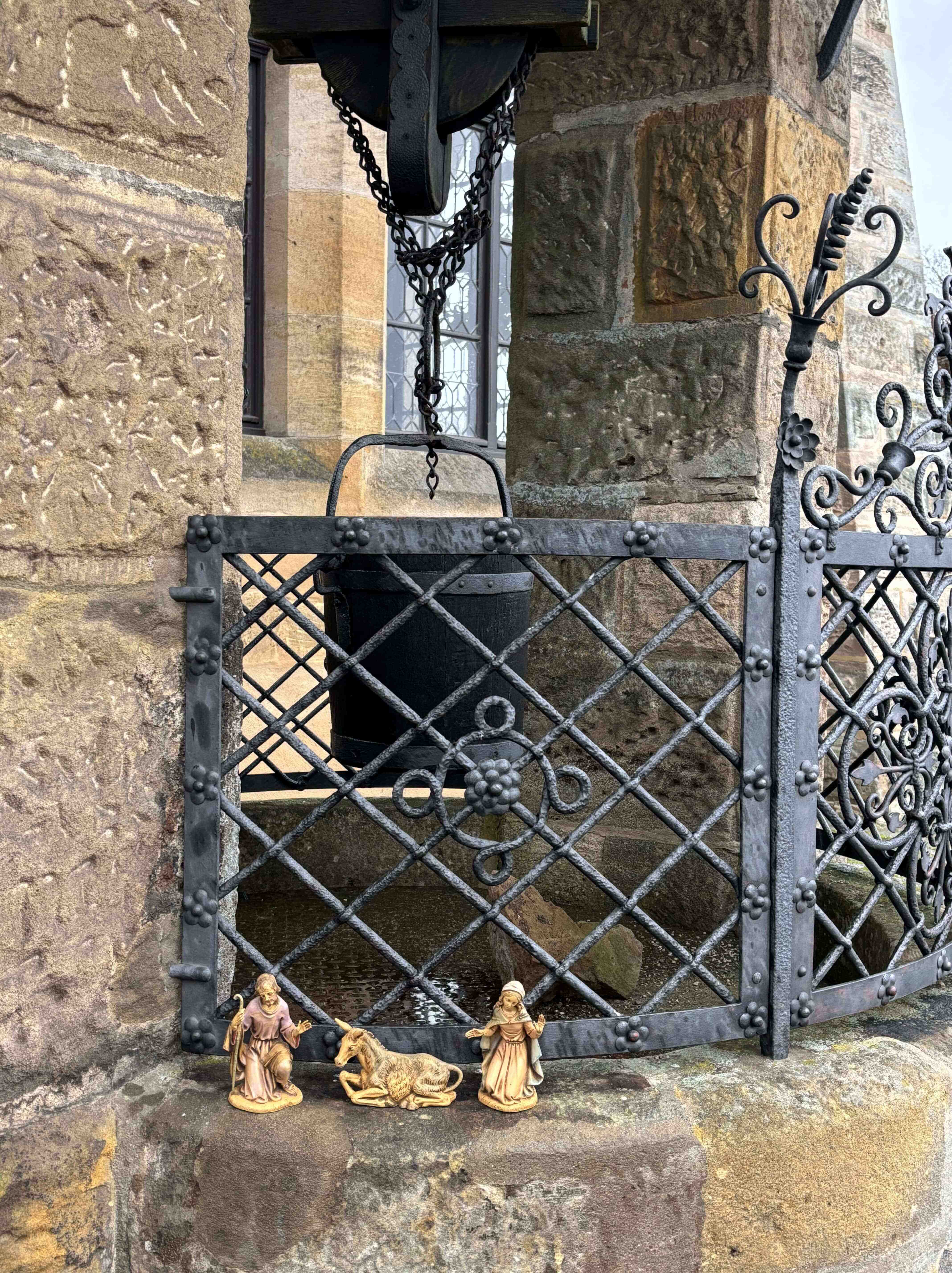 Heute morgen waren wir recht früh in Bamberg unterwegs. Als erstes durften wir uns den schönen Dom in Bamberg anschauen. Josef, Maria und auch der Esel waren sehr von der großen Kirche beeindruckt. Auf dem Rückweg vom Dom sind wir an einer alten traditionellen Metzgerei vorbeigekommen.Dort haben wir zum Frühstück erst einmal ein Brötchen mit Leberkäs gegessen. Nach dem Frühstück sind wir aufgrund der schlechten Wetterlage mit dem Bamberger Hügelbus eine Stunde herumgefahren. Nur alleine die vielen Kirchen in Bamberg und davon gibt es 24 haben uns sehr beeindruckt.Wir durften sogar zwischendurch aussteigen und haben uns die Altenburg erst einmal angesehen. Toll!! Zum Glück waren wir nicht zu Fuß unterwegs. Das wäre für Maria auch viel zu anstrengend gewesen.