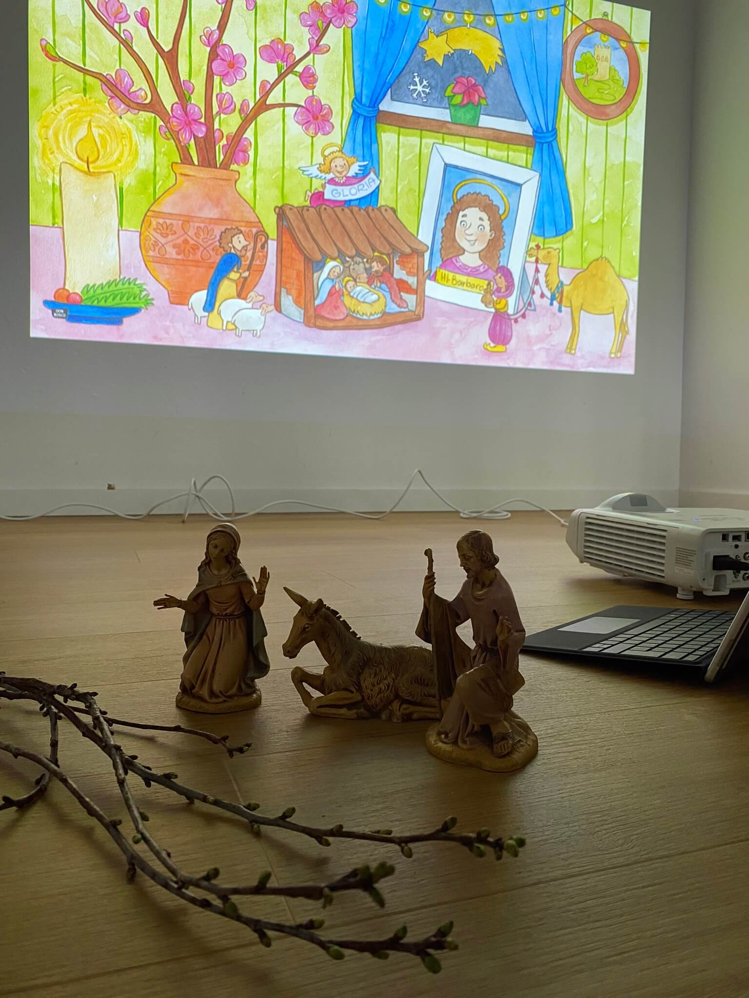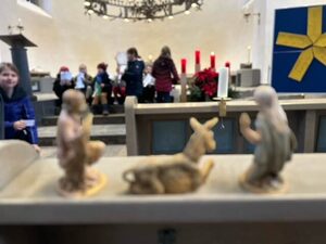 in einem großen Raum mit vielen Kindern steigen wir aus unserem Transportmittel. Die Kinder sitzen im Kreis und begrüßen uns freundlich. Wir sind in der Mäusegruppe der Kita St. Lambertus gelandet und stellen uns vor. Die Kinder erzählen uns, dass sie einen Esel namens Elias kennen. Jeden Tag geht die Geschichte über Elias weiter und die Kinder laden uns dazu ein, sie mit anzuhören. Am Adventskranz machen wir es uns gemütlich und lauschen…