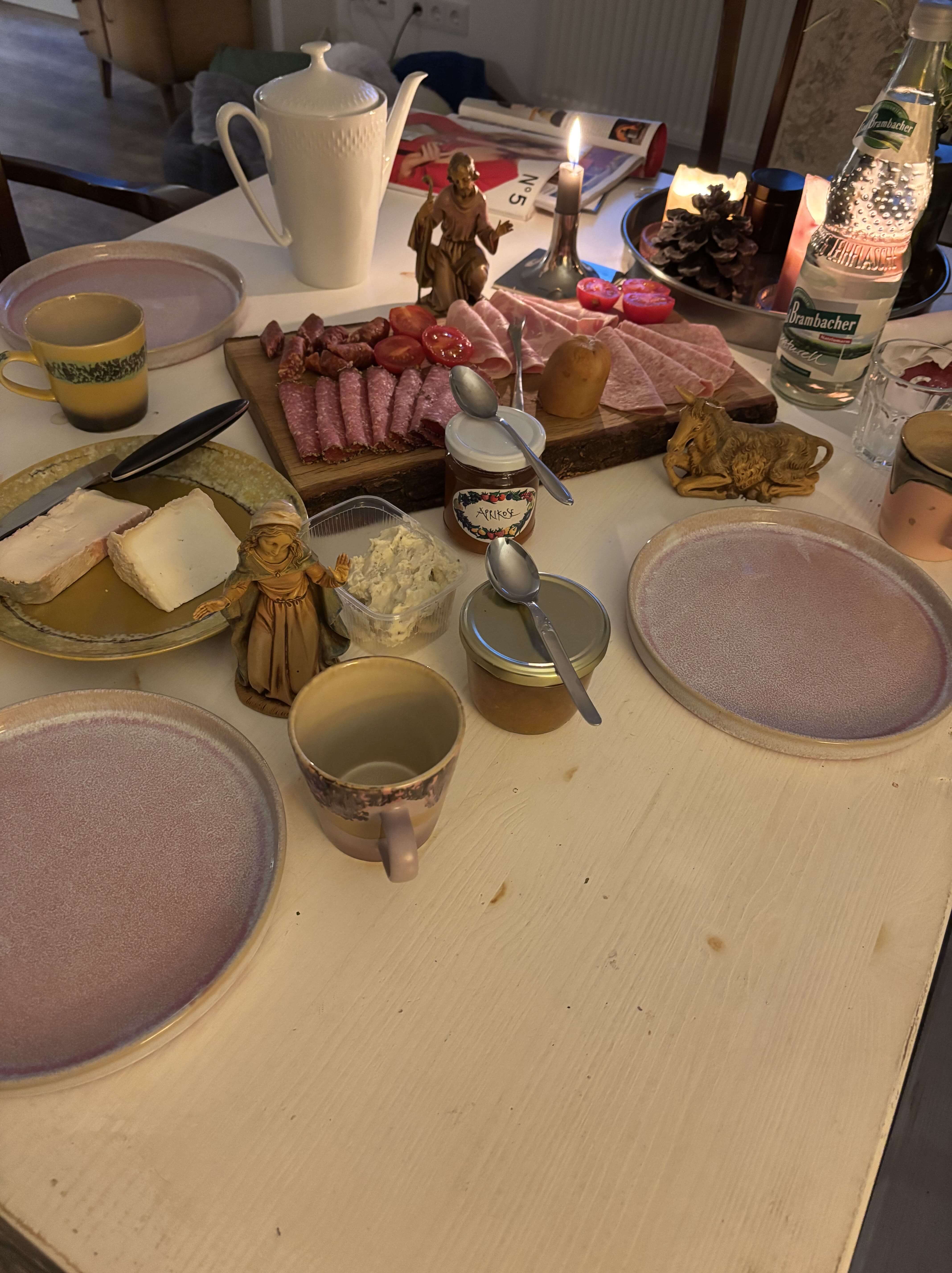 heute morgen sind wir nach einer guten und erholsamen Nacht erst einmal von der Gastgeberin zum Frühstück eingeladen worden. Es gab bayrische Spezialitäten. Köstlich!