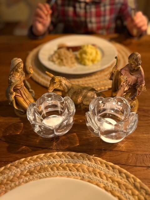 Wir kamen schon am 8. Dezember zu unserer neuen Herbergsfamilie und waren ein bisschen aufgeregt, ob alles gut funktionieren würde. Der Einzug in die neue Herberge musste sehr gut mit der vorherigen Herbergsmutter koordiniert werden, da unsere neue Familie am Abend nicht anwesend war. Dies hat aber problemlos funktioniert: Wir haben einen sicheren und trockenen Platz vorgefunden. Nach später Ankunft der neuen Herbergsfamilie konnten wir mit unserem Eselchen einen warmen Platz neben einem schönen Adventsgesteck einnehmen. Wir freuten uns alle zusammen die zweite Kerze anzünden zu können, um bei Kerzenschein ein bisschen innezuhalten.