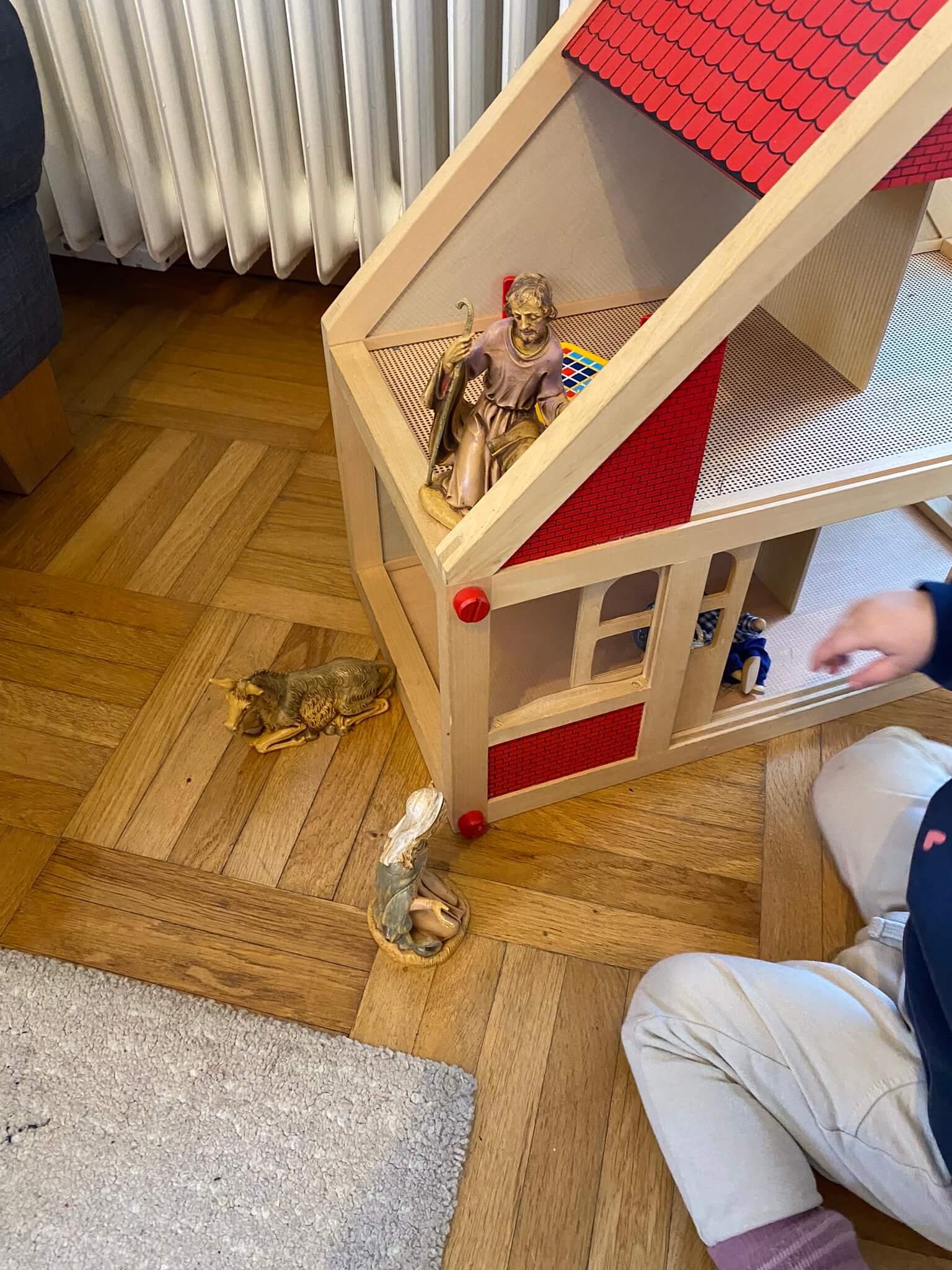 auf unserer Reise nach Bethlehem haben wir heute unsere erste Herberge gefunden. Der Tag startete voller Aufregung: die Kinder der Familie entdeckten direkt nach dem Aufstehen den Adventskalender auf der Fensterbank. Natürlich wurde das erste Türchen sofort geöffnet. In der Tüte verbargen sich zwei Puppen für das neue Puppenhaus. Natürlich durften wir sofort mitspielen.